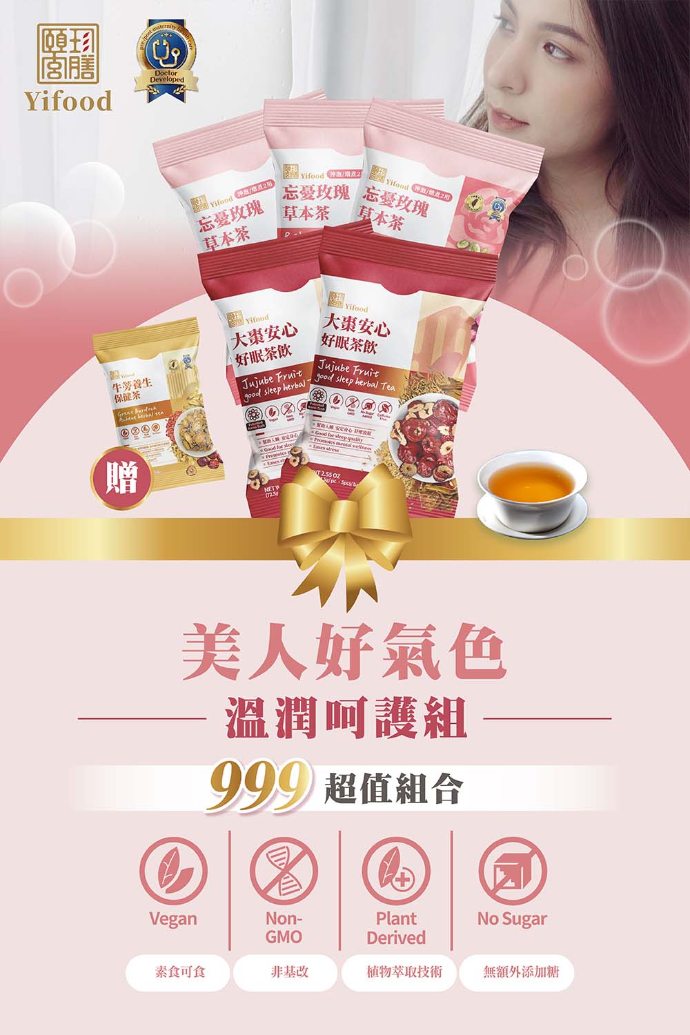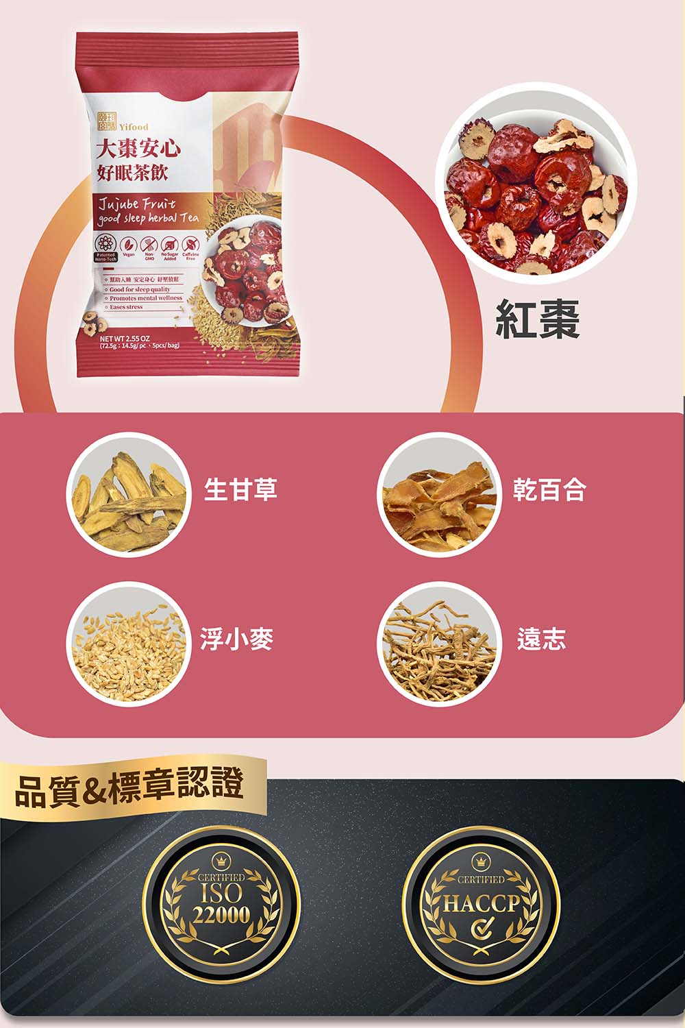 1.商品組合/規格:大棗養心安神茶2包+忘憂玫瑰草本茶3包 加贈牛蒡養生茶包