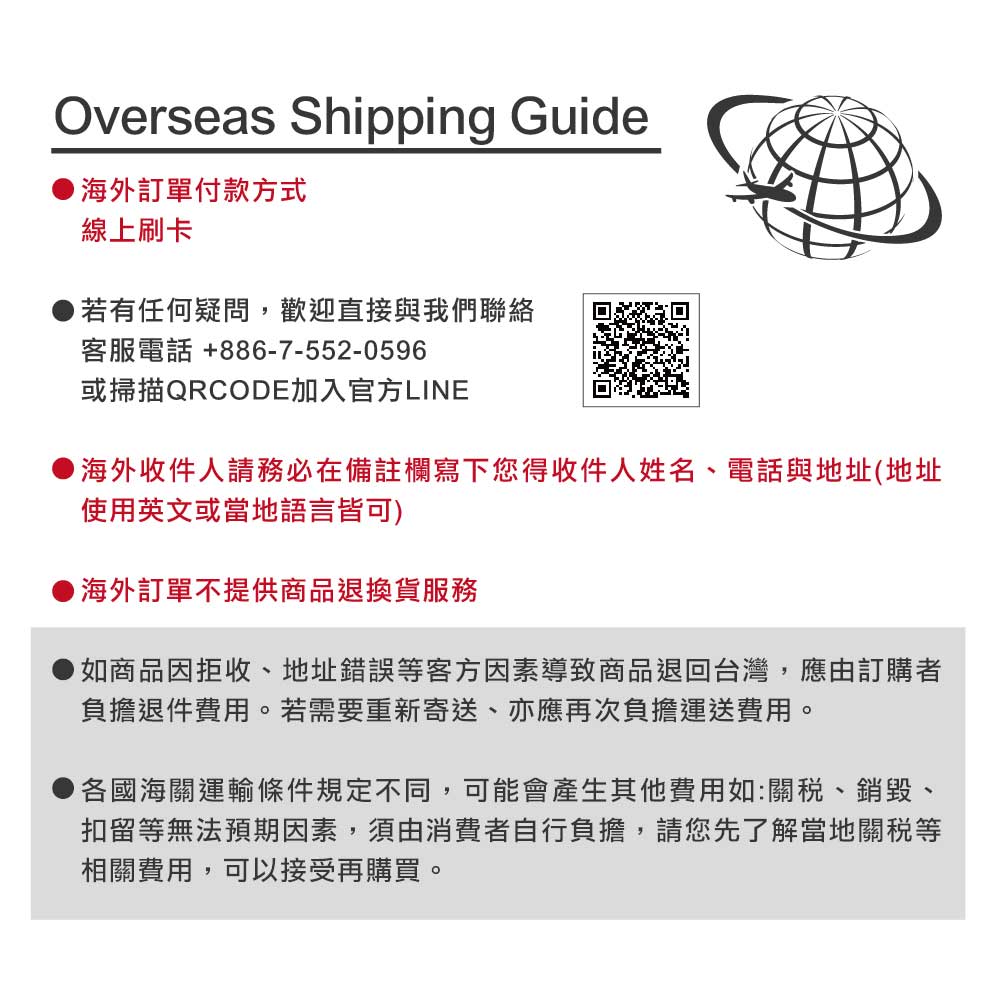 關於出貨,海外配送將無法指定到貨日及時段,敬請見諒!