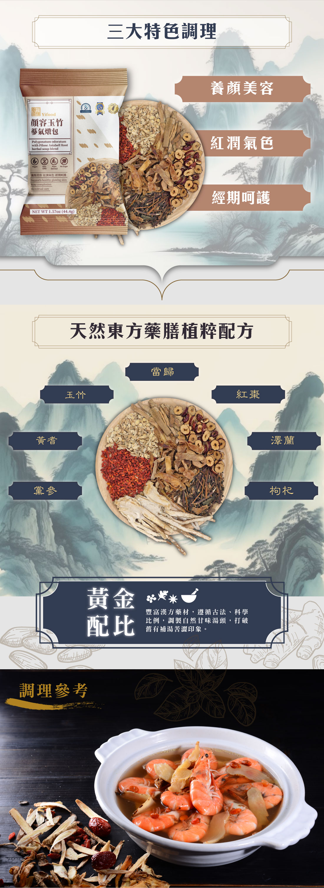 ■ 商品名稱:顏容玉竹蔘氣燉包-Polygonatum odoratum with Pilose Asiabell Root herbal soup blend